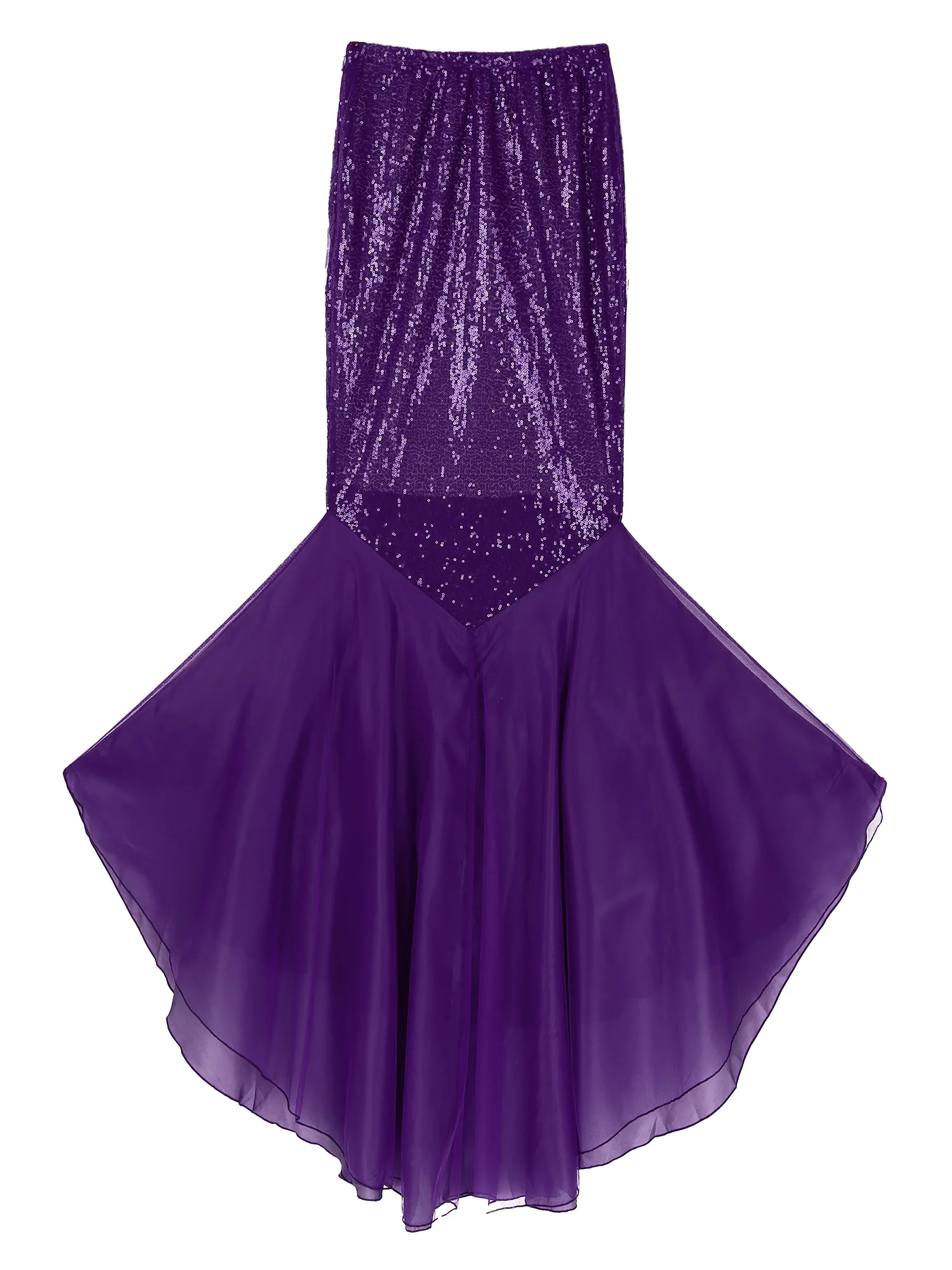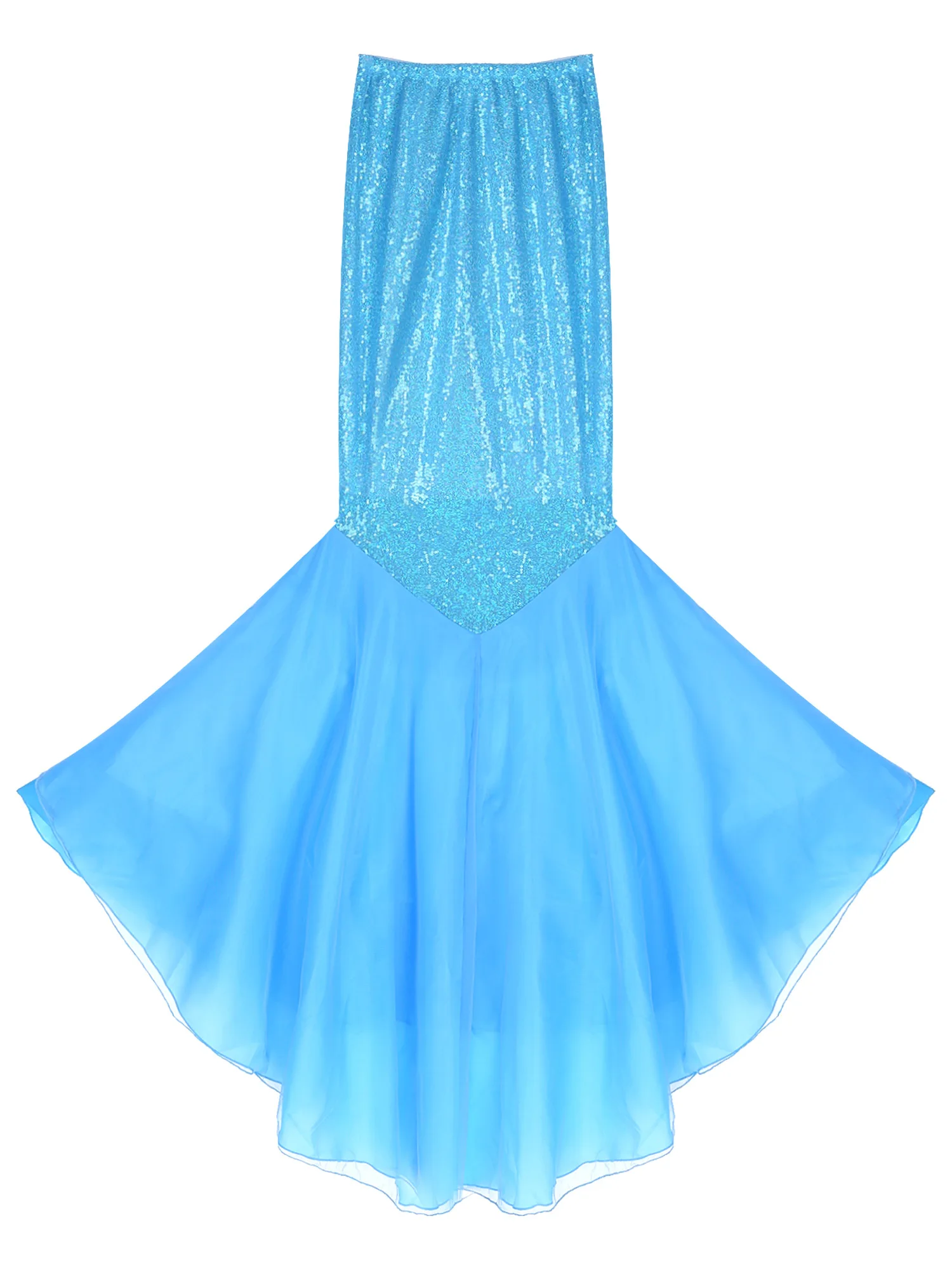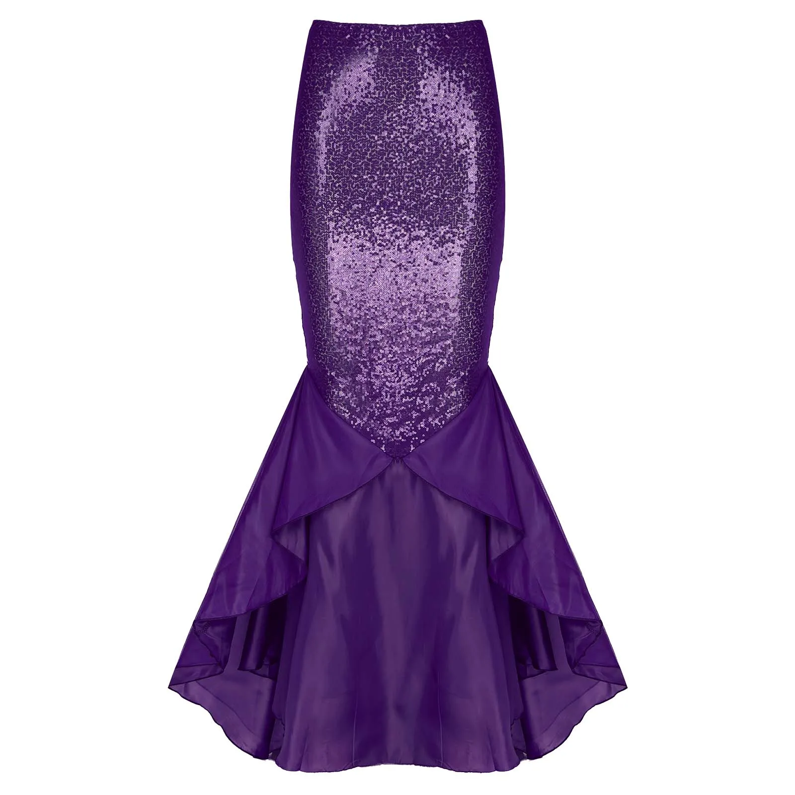 iEFiEL Elegant Skirts Women Ladies Sequined Mermaid Tail Skirt Photography Costume Vestidos Fancy Maxi Skirt for Night Party