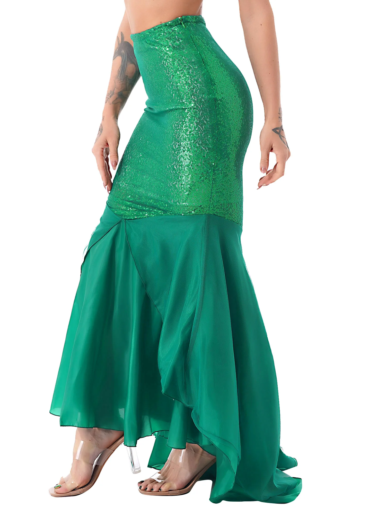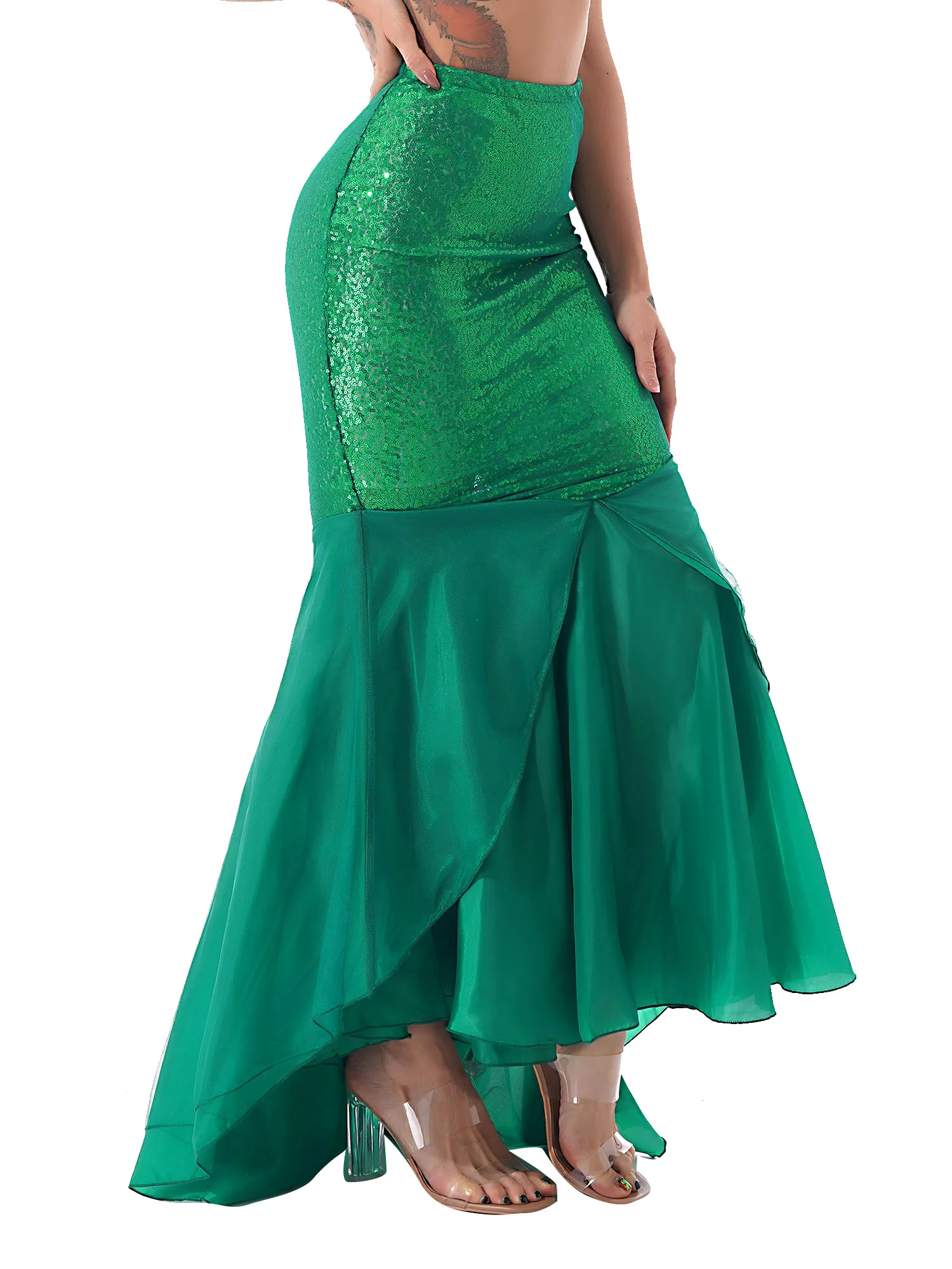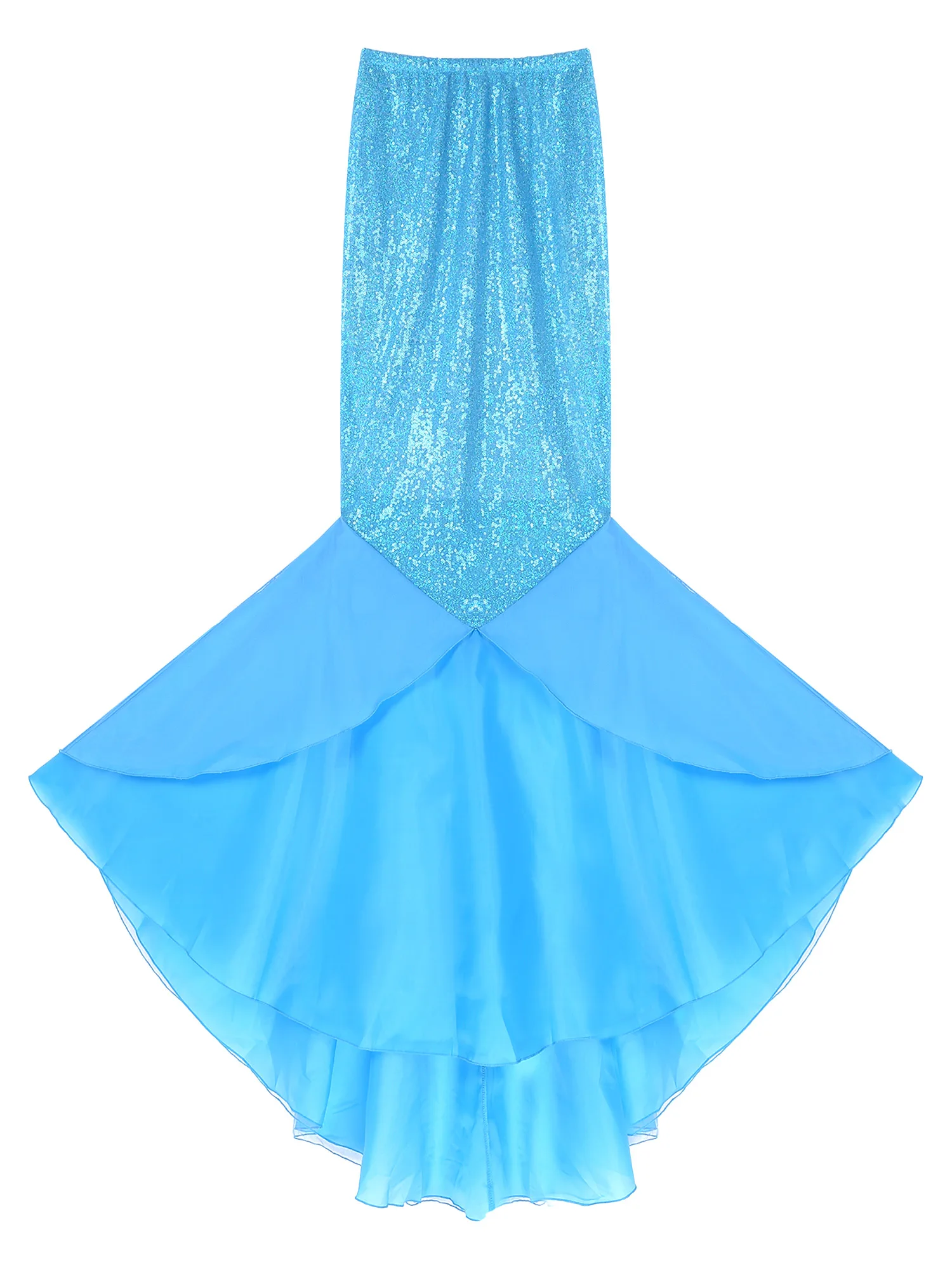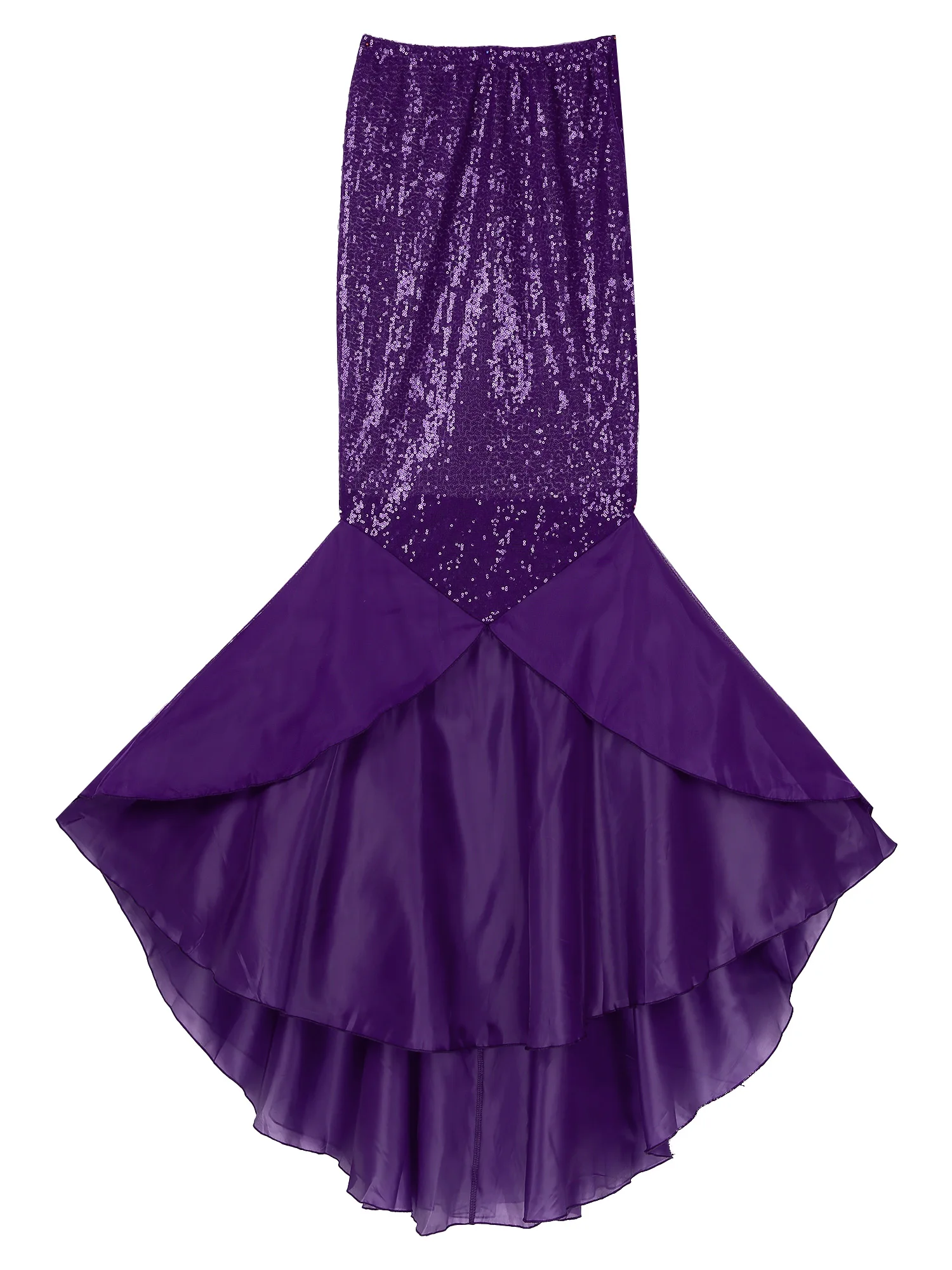 iEFiEL Elegant Skirts Women Ladies Sequined Mermaid Tail Skirt Photography Costume Vestidos Fancy Maxi Skirt for Night Party